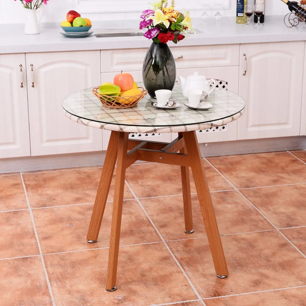 استعارات ل Goplus جولة مائدة الطعام الصلب إطار الزجاج العلوي الحديث طاولة خشبية الساق مكتب ديكور المنزل أثاث المطبخ HW54171