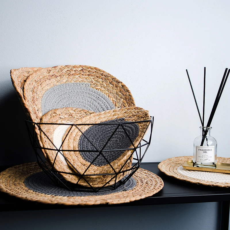 صور من الإبداعية تحديد الموقع ألياف البوليستر القطن طاولة طعام العزل جولة المفارش كوستر الكتان منصات الجدول عاء الحصير المنزل ديكور
