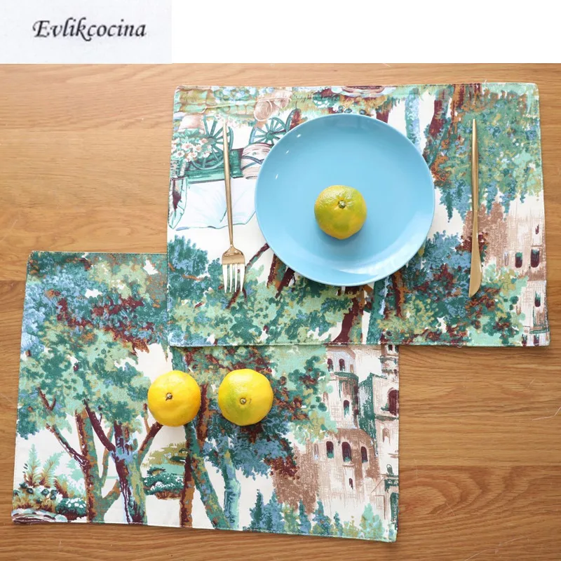 المنتجات ذات الصلة ل Dining Tables و شحن مجاني الغابات النباتات الخضراء تحديد الموقع طاولة طعام السفينة القماش كوب عازل سادة المطبخ رف الفردية لجدول