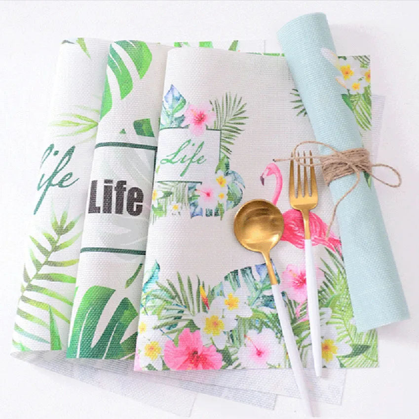 معرض ل النباتات الاستوائية فلامنغو تحديد الموقع طاولة طعام الوقايات بساط عازل مربع PVC للماء المطبخ اكسسوارات الديكور المنزل