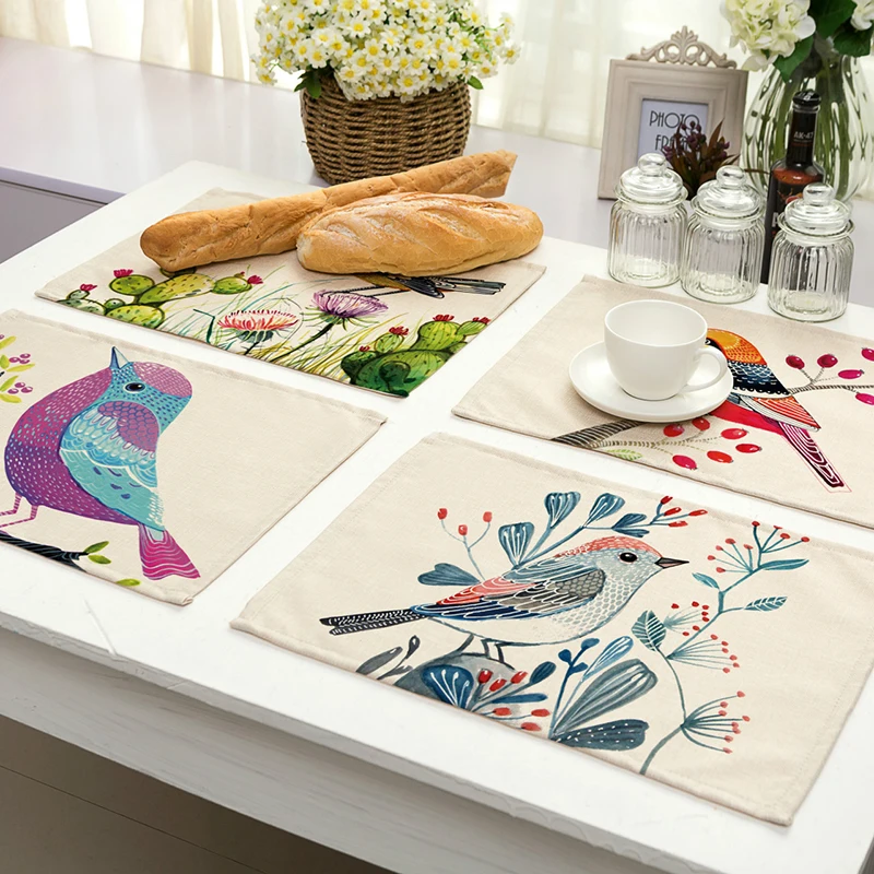 وانت con motivo deشراء Dining Tables, luego زهرة الطيور مطبوعة الغربية وسادة القطن الكتان اليد رسمت تحديد الموقع طاولة طعام بساط عازل كوستر اكسسوارات المطبخ S2 es posible poner please